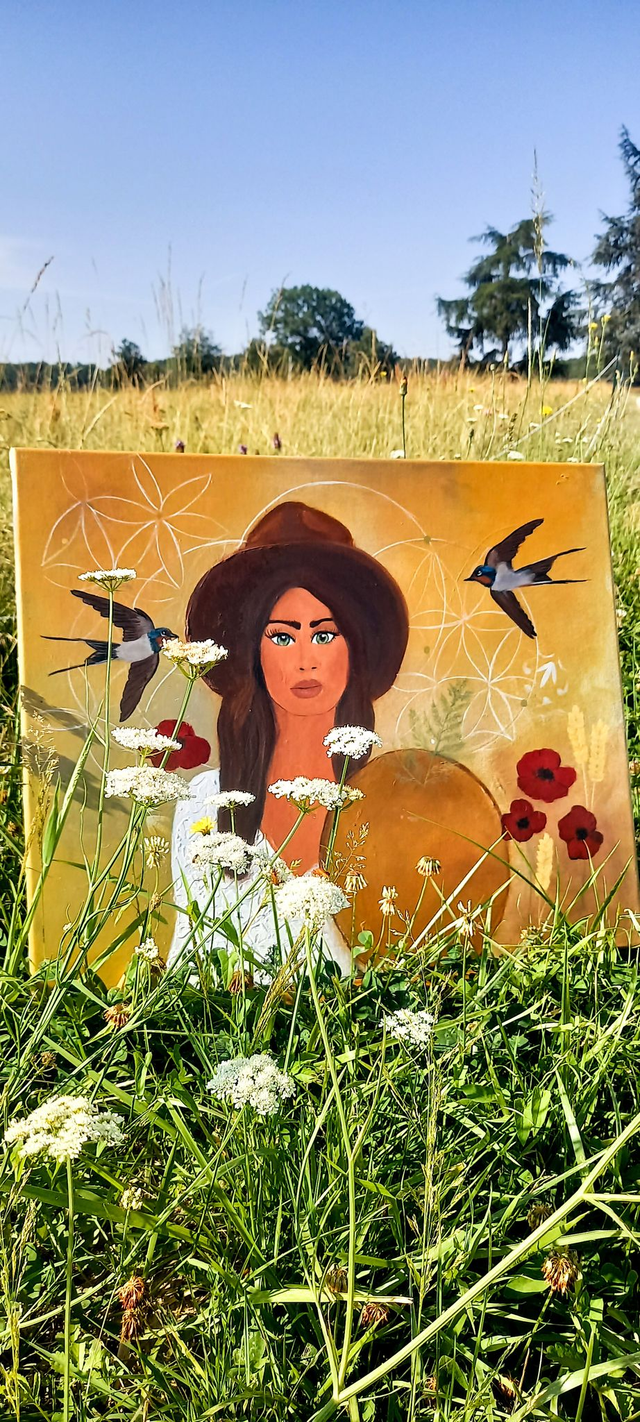 Peinture acrylique sur toile en coton de 55x46x2cm